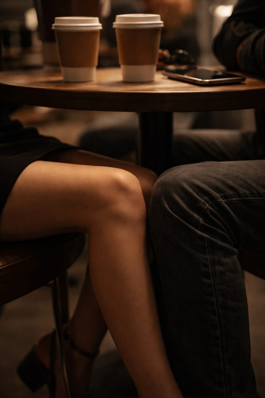 Mesa pequeña. Piernas que se rozaban. Sonrisas lentas. Miradas que bajaban y subían.
